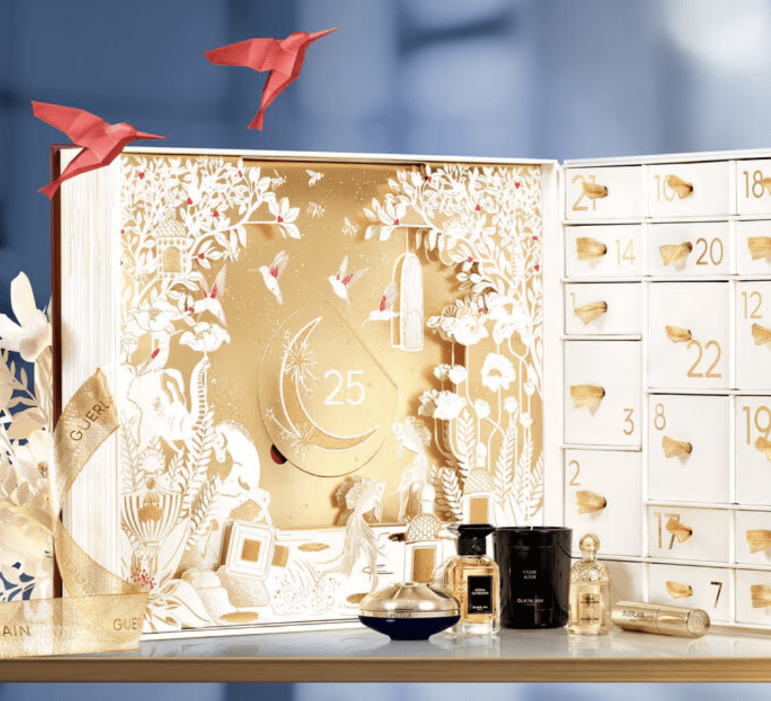 Un bijou de poésie et de raffinement. Conçu comme un livre merveilleux par la paper artist Mélissandre Vidal, ce calendrier de l’Avent dévoile 25 trésors signés Guerlain.