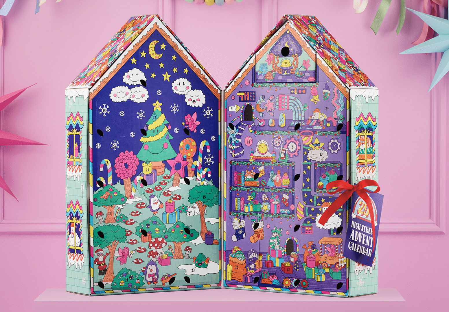 Lush Advent Calendar propose, lui, 25 produits vegan exclusifs : bombes de bain, gels douche festifs, bougie, parfum et surprises inédites. Le design, signé Shruti Gadhvi (Artbox London), célèbre la liberté, la détente et la joie, dans une explosion de couleurs et de positivité. 245 €. Disponible en boutique et sur lush.com