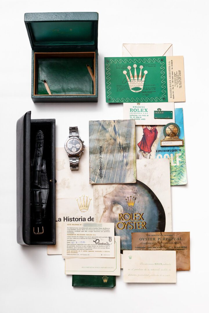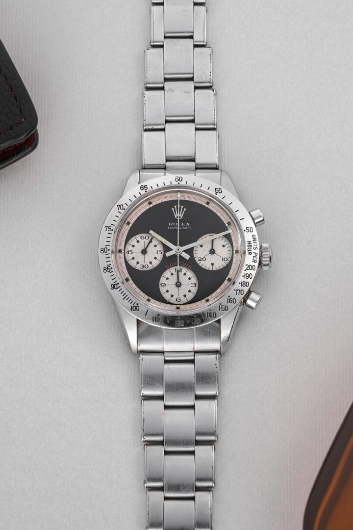 Pièce maîtresse de cette vente exclusive : une Rolex Daytona 6262 Paul Newman de 1971 ( photo en une ), cadran exotique, or gris, 2 bracelets, boîte et papiers inclus, achetée à Buenos Aires ( estimation :  375 000 €). Une montre que Paul Newman a érigée, sans le vouloir, au rang d’icône culturelle.