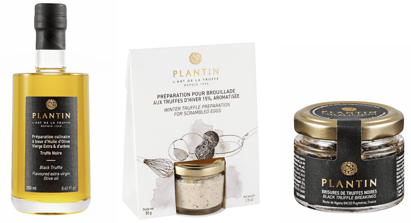 Plantin Brisures de truffes noires, Huile d’olive vierge extra aromatisée à la truffe noire et Préparation pour brouillade aux truffes d’hiver