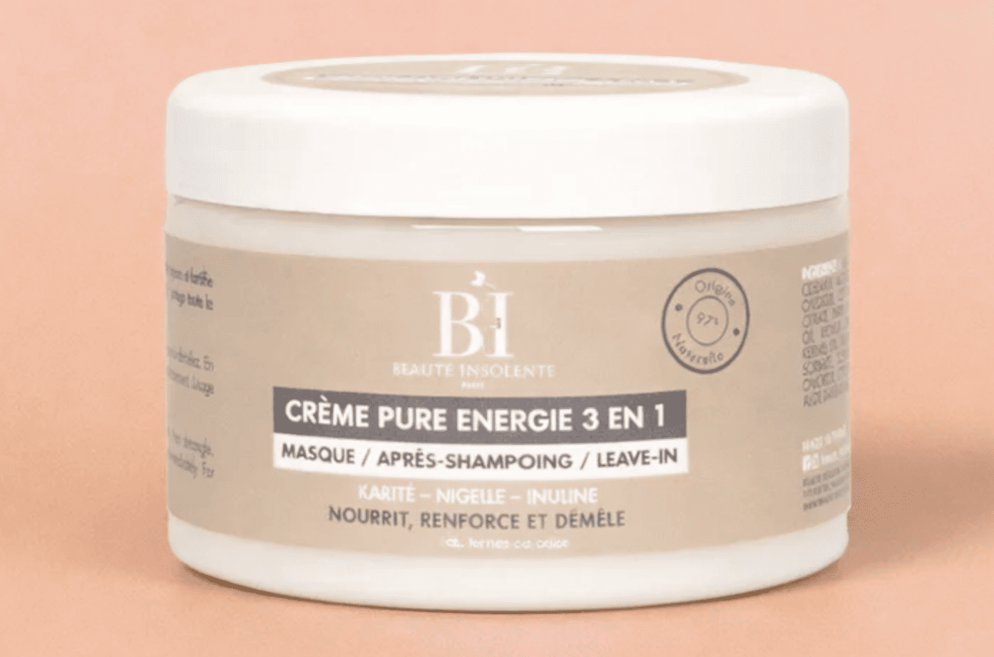 Coup de cœur pour cette marque française dédiée aux cheveux texturés ( bouclés à crépus). Cette crème 3-en-1 ( masque/ après-shampoing/leave-in) à l’huile de nigelle et protéines de maïs nourrit intensément les boucles sans jamais les alourdir. Un sans-faute (97 % naturel). Noté 86/100 sur Yuka, il convient à toute la famille. 250 ml / 24 € . Dispo sur beauteinsolente.com