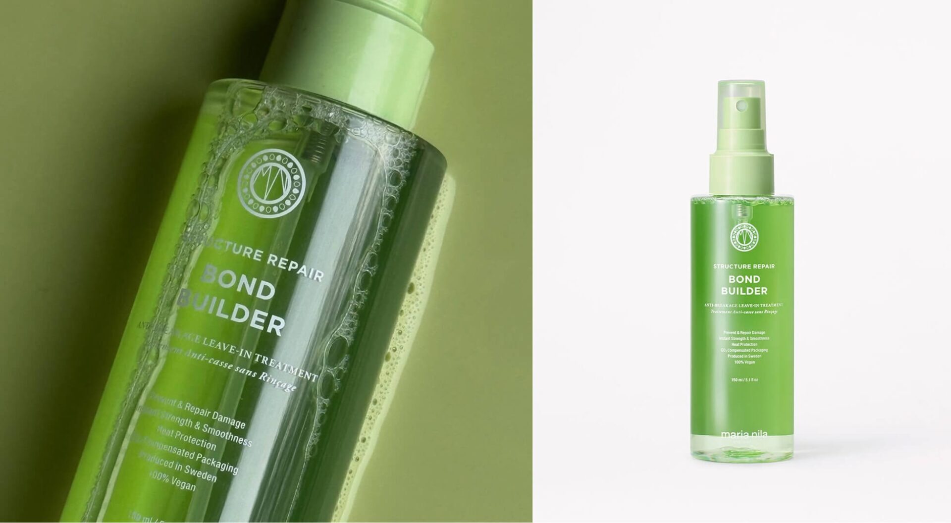 Ce soin sans rinçage suédois crée une “néo-cuticule” protectrice. C’est l’allié idéal pour celles qui utilisent souvent brosse et sèche-cheveux, car il retient l’hydratation au cœur de la fibre. Utilisé sur cheveux humides après le shampooing, il pénètre en profondeur. En touche finale sur cheveux secs, il scelle les fourches et apporte une brillance instantanée. 49,90 €. Dispo sur marianila.com