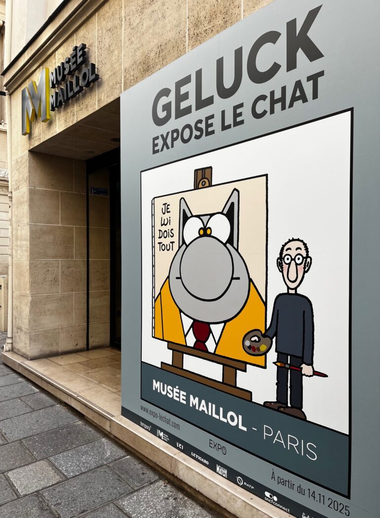 Infos : Exposition Geluck expose le Chat, du 14 novembre 2025 à mai 2026. Musée Maillol, 59-61, rue de Grenelle, 75007 Paris. Ouvert tous les jours de 10h30 à 18h30. Nocturne le mercredi jusqu’à 22h. Tarifs Standard (18 ans et +) : 16,90 € ; Jeune (6 – 18 ans) : 12,90 €; Pack Famille ( 4) : 48 € Tarif réduit: 14,90 € et 12,90€ . Production : Tempora / Musée Maillol. www.expo-lechat.com www.museemaillol.com
