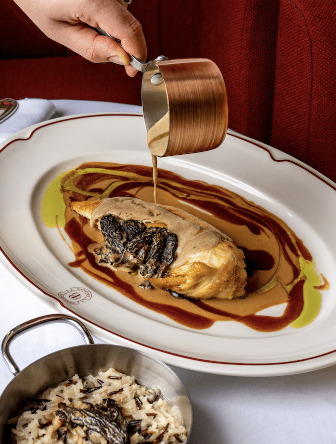 En cuisine, le chef Mathieu Vastel orchestre une partition généreuse, exquise et lisible. Riche d’un parcours dans la haute gastronomie, il propose une “cuisine de cœur” 100% fait maison où le produit est roi et avec mise en avant des trésors du terroir. Au menu : un pâté en croûte magistral, des linguines au homard à la bisque réduite, un loup en croûte de selou encore un Châteaubriand Rossini pour les amateurs de grands classiques. Les gourmands ne seront pas en reste avec un baba au rhum et des profiteroles déjà cultes du pâtissier Benoît Legeart.