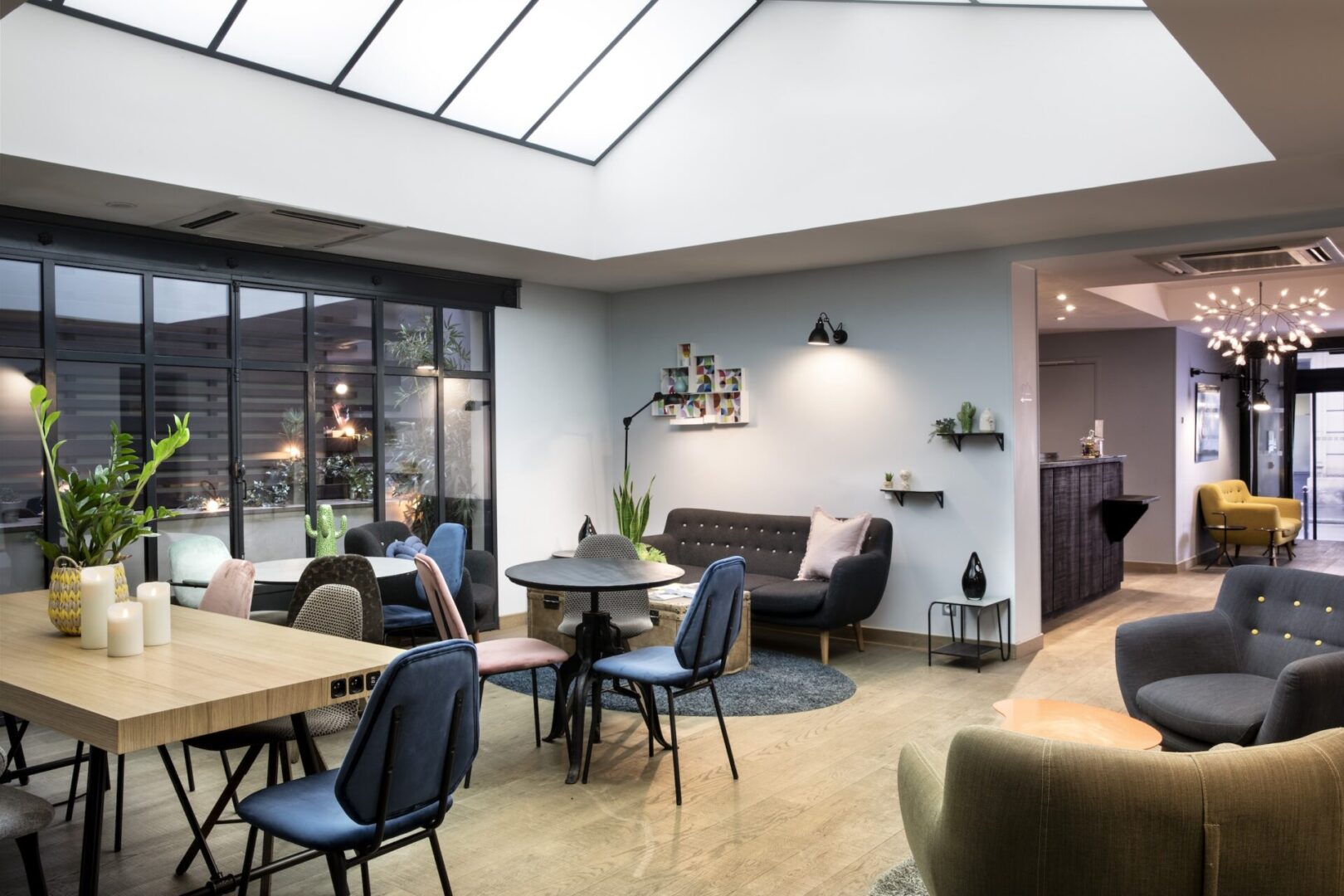 À deux pas de l’Opéra Garnier et des Grands Magasins, l’Hélios Opéra rend hommage aux ateliers d’artistes. La décoration néo-industrielle mêle verrières, œuvres d’art et mobilier coloré design pour une immersion créative totale.