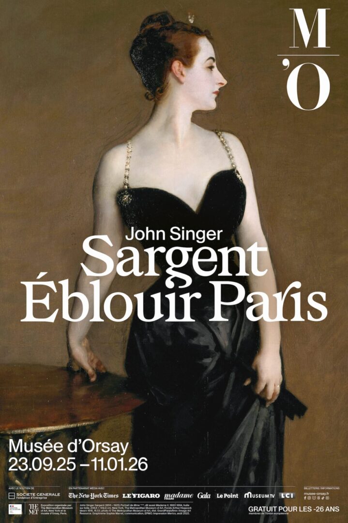 Exposition John Singer Sargent. Éblouir Paris, du 23 septembre 2025, au 11 janvier 2026.  Musée d’Orsay, Esplanade Valéry Giscard d’Estaing 75007 Paris. Tarifs : 16 € en ligne, 14 € sur place ; Tarif réduit : 13 € en ligne, 11 € sur place. 9h30/18 h. (jeudi jusqu’à 21:45). Fermé lundi.