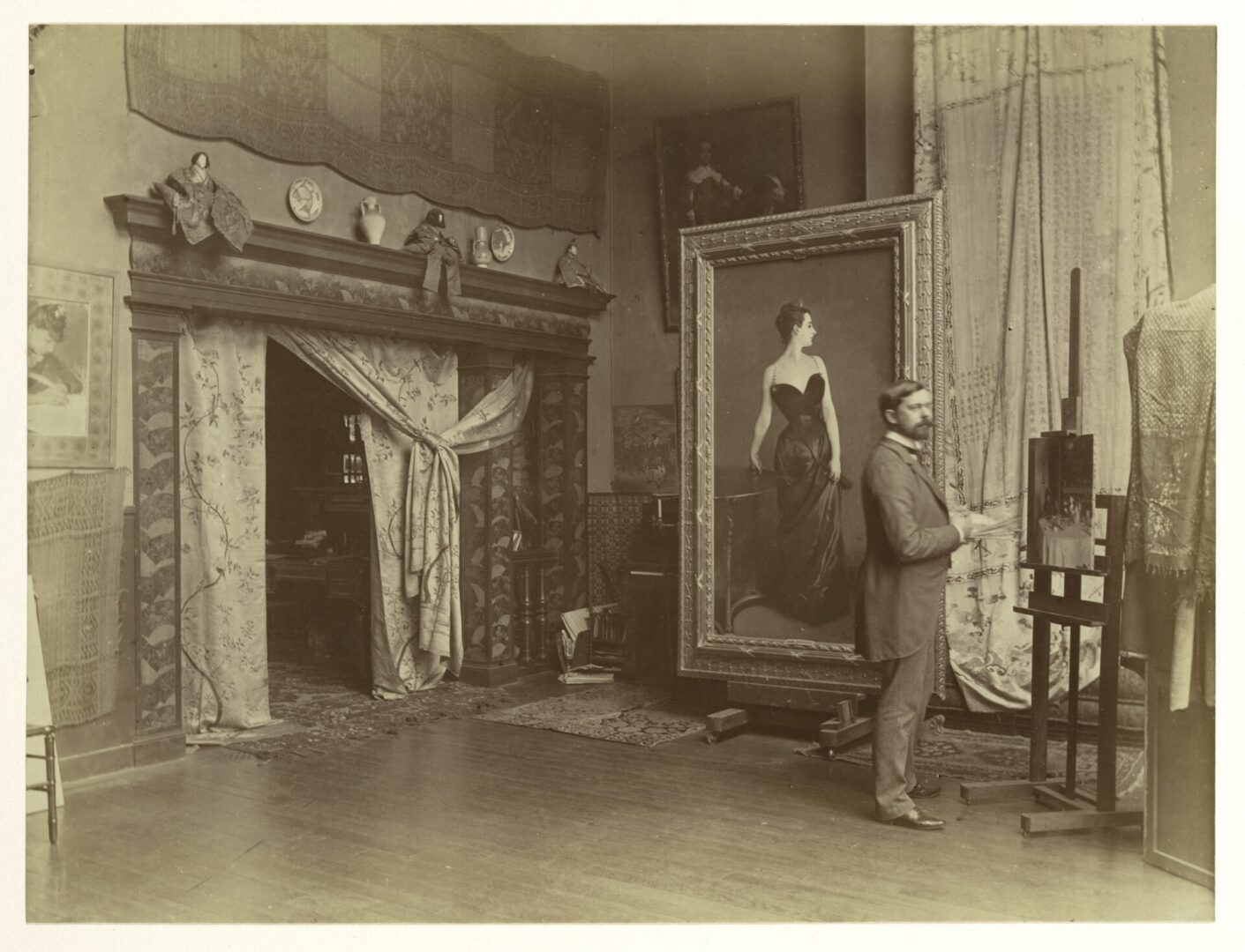 Adolphe Giraudon. John Singer Sargent  dans son atelier avec le portrait de Madame X, vers 1884/ Tirage argentique à l’albumine, 20 × 26,4 cm / New York, The Metropolitan Museum of Art, achat, don du Judy Angelo Cowen Charitable Trust, 2022/ Photo © The Metropolitan Museum of Art, dist. GrandPalaisRmn / image Art Resource.