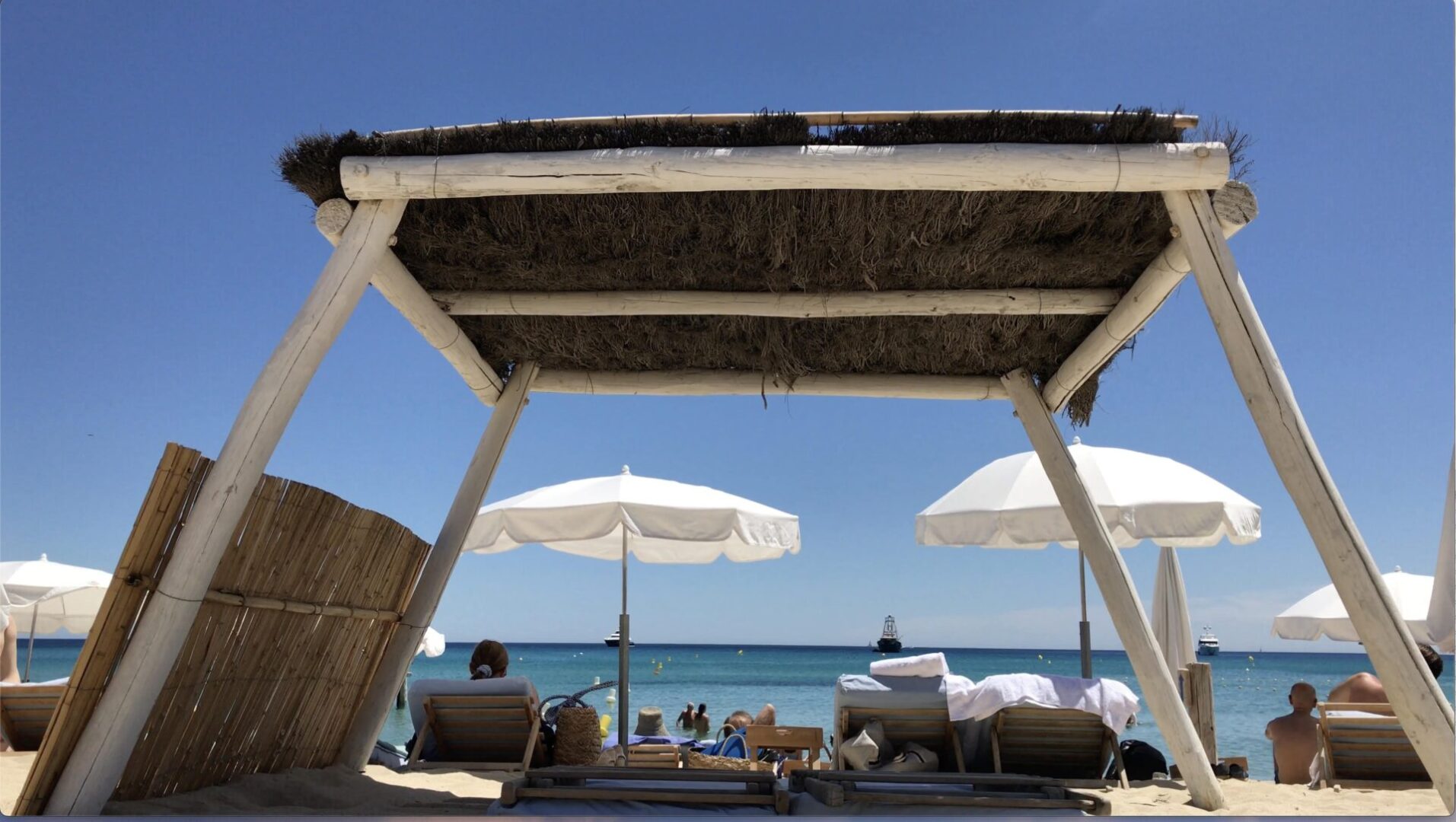 Le Club 55, c’est aussi la journée à la plage, l’eau transparente, les matelas bleu délavés posés à même le sable, les paillotes, les parasols beige, le shopping à la boutique, les déjeuners plus légers ou les goûters au snack construit en bois flotté, le spectacle des yachts dans la baie, les grandes nages dans une Méditerranée chaude et accueillante, les amis et les amis de nos amis que l’on retrouve chaque année, mais aussi les nouvelles rencontres, car heureux de faire partie du même Club, chacun se salue, chacun se dit bonjour, chacun est content d’être là, ce qui rend l’ambiance unique dans ce mélange enthousiasmant de confiance et de gaieté.