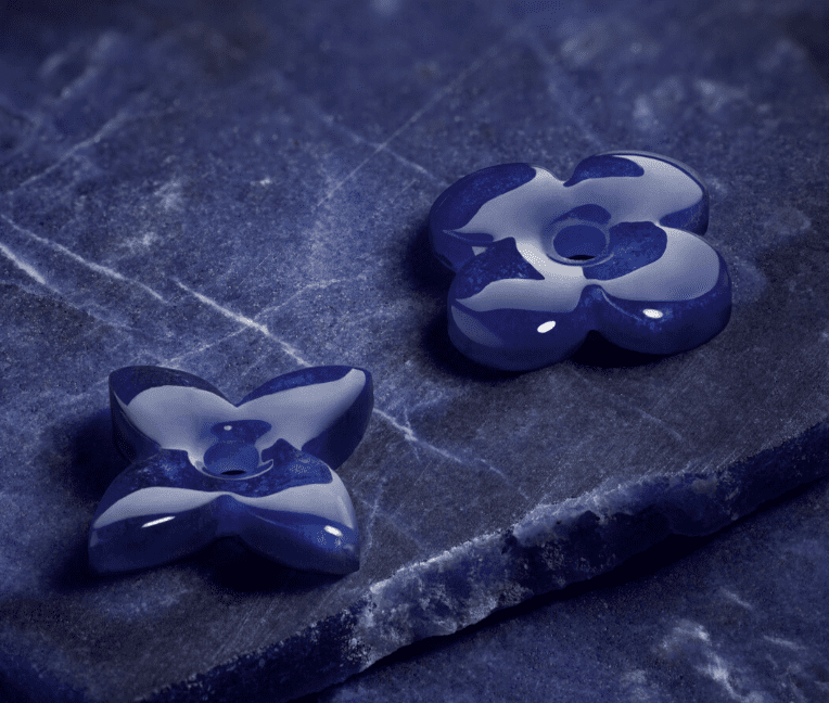 Depuis ses débuts, Color Blossom explore une palette chromatique audacieuse. Nacre rose, malachite, onyx… autant de pierres qui composent un vestiaire joaillier vibrant. En 2026, la collection franchit une nouvelle étape avec l’introduction de la sodalite, une pierre bleu marine intense, marbrée d’inclusions noires et blanches, rare en joaillerie.