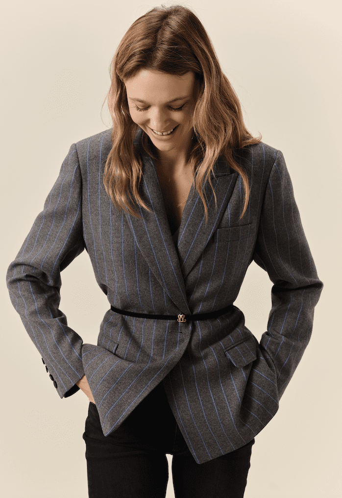 Maison Sarah Lavoine Prêt à Porter Printemps-Été 2026. Veste Alesia 415 €, Gilet de costume Didot gris, 225 €