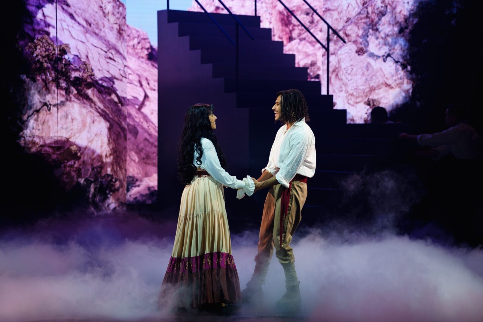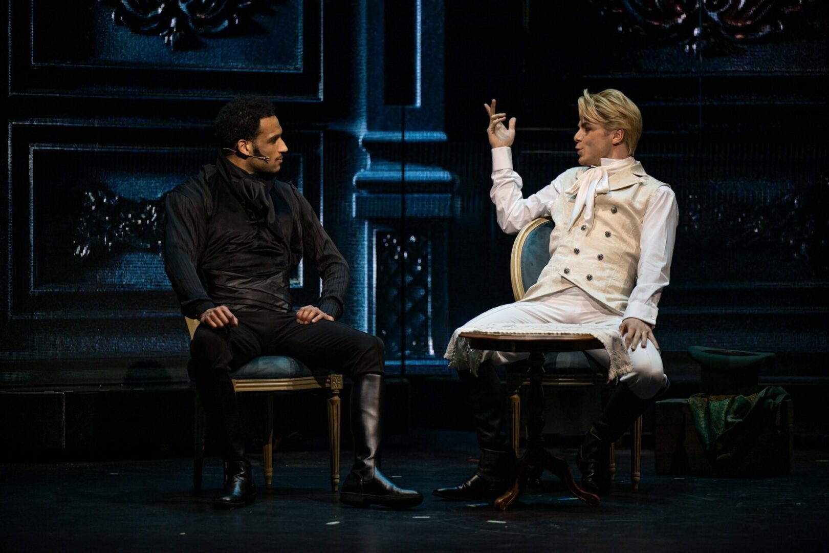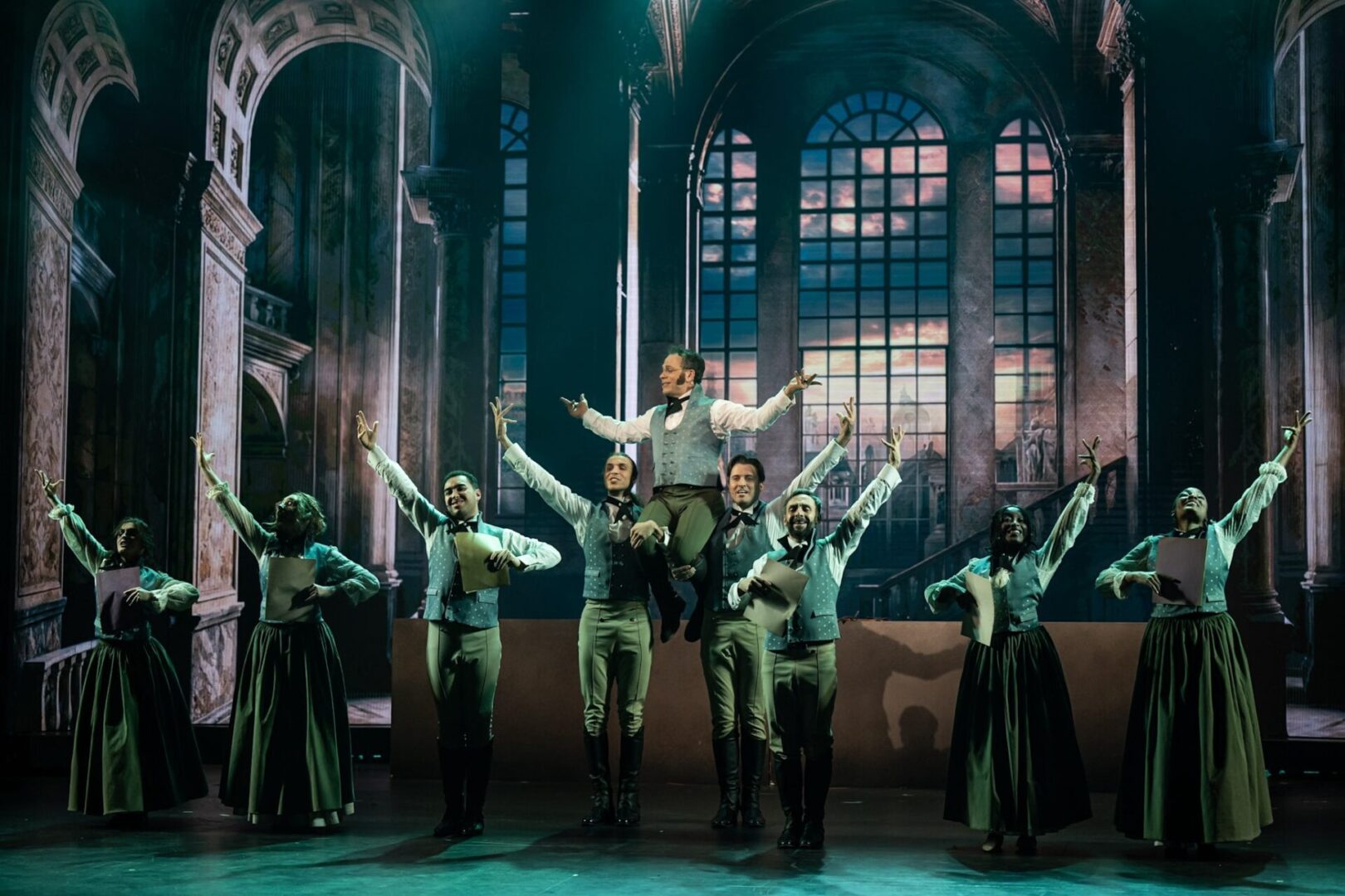 Face à lui, Océane Demontis est une merveilleuse Mercédès, incarnant une fidélité et une dignité blessée qui émeut aux larmes. La complicité entre les deux artistes apporte une profondeur rare à leur amour impossible. Les antagonistes ne sont pas en reste : le trio de “traîtres” formé par Loïc Suberville (Fernand), Maxime de Toledo (Villefort) et Cyril Romoli (Danglars) est d’une efficacité redoutable. Mention spéciale à Tatiana Matre, impériale dans le rôle de Madame Danglars. Saluée par la critique, elle campe une femme prise dans un jeu complexe de manipulations et de passions, apportant une nuance psychologique bienvenue à cette fresque haletante.