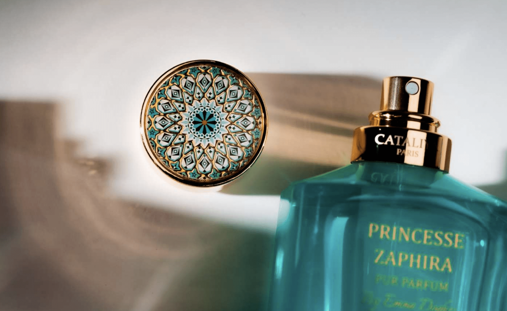 Jeune maison française de parfumerie de niche, fondée par Dahmane Ouafi, Maison Cataliya puise son inspiration dans les arts décoratifs méditerranéens, et plus particulièrement le Zellige, mosaïque ancestrale porteuse de récits et de mémoires. la marque explore une parfumerie de transmission, où chaque fragrance raconte une histoire.Avec Princesse Zaphira créée par Emna Doghri (Floralys), Maison Cataliya rend hommage à une figure aussi tragique qu’inspirante, symbole de courage, de dignité et de fidélité. À l’image de cette femme libre et déterminée, la fragrance joue les contrastes entre douceur et force, tradition et modernité. L’ouverture fraîche et lumineuse de pastèque et de melon, accord délicat et complexe à maîtriser, apporte une clarté presque solaire. Le cœur floral, dominé par le jasmin et la violette, révèle une élégance poudrée et raffinée, tandis que le fond mêle ambre gris, santal, musc blanc et vanille pour un sillage sensuel, enveloppant et durable.Un extrait de parfum lumineux et affirmé, qui conjugue grâce et caractère, à l’image de Zaphira : fragile en apparence, mais invincible dans sa détermination. Extrait de parfum 75 ml/ 260 €; 10 ml/ 39 €. www.maisoncataliya.com