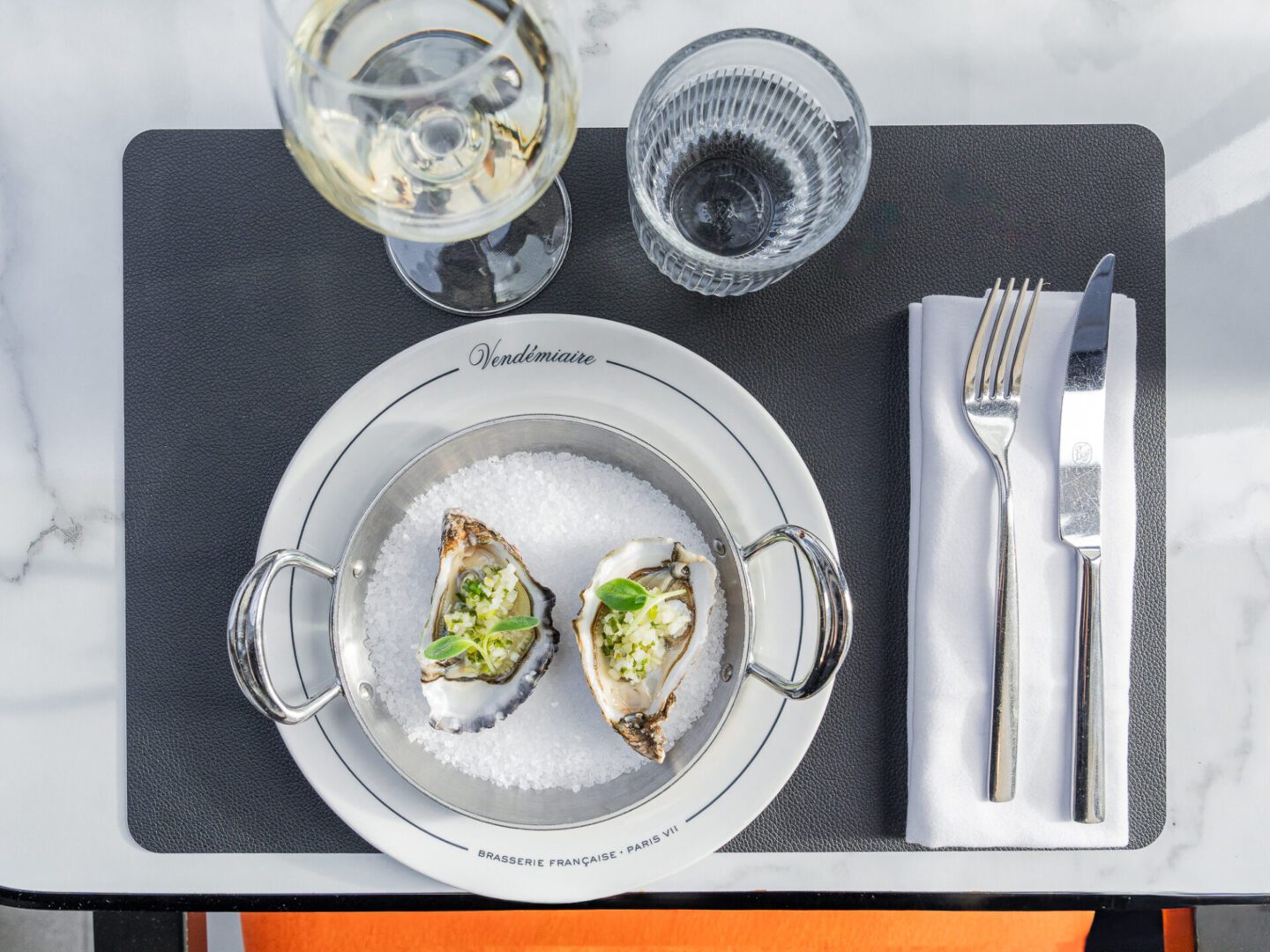 Fidèle à son ADN, Vendémiaire continue de proposer des accords mets-vins et spiritueux pointus, avec une sélection de pépites françaises qui subliment la cuisine de partage de Jeffrey Quetin. Que ce soit dans le salon privé pour un dîner discret ou sur l’immense terrasse aux beaux jours, le plaisir reste la seule règle en vigueur. Imbattable aussi la nouvelle formule « Brèves de comptoir » , proposant une cuisine française assumée, accessible et sincère ( un plat, un verre de vin au choix et un café), à à 25 € .. au comptoir !