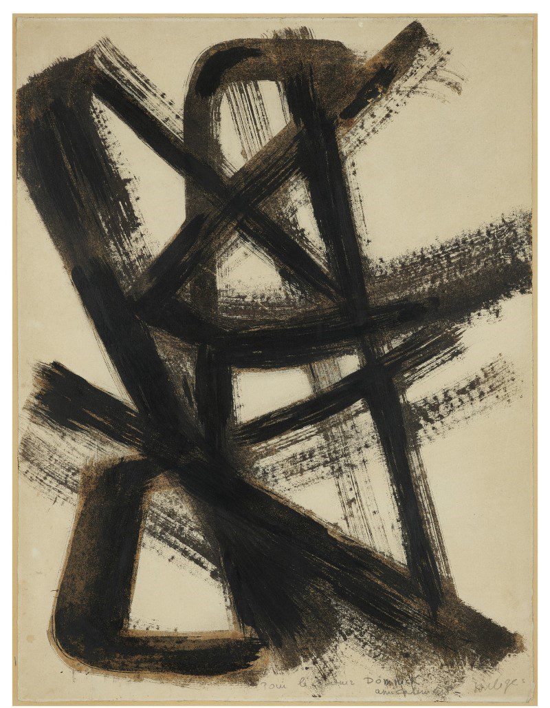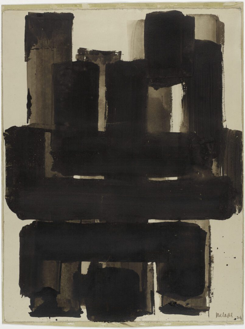 Historiquement, ces œuvres sur papier ont pourtant été décisives. Dès 1948, l’une d’elles est choisie pour l’affiche de l’exposition itinérante Französische abstrakte Malerei en Allemagne. Une reconnaissance fulgurante, qui place le jeune Soulages aux côtés d’artistes bien plus âgés. Michel Ragon notait combien cette composition en noir et blanc avait marqué ses contemporains.