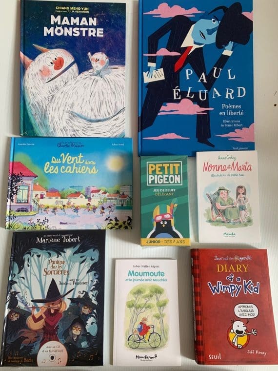 Livres et jeux d’enfants : Maman monstre, Panique chez les sorcières, Petit Pigeon, Diary of a Wimpy Kid, Du vent dans les cahiers etc…