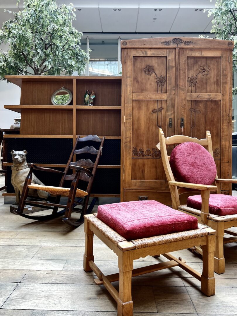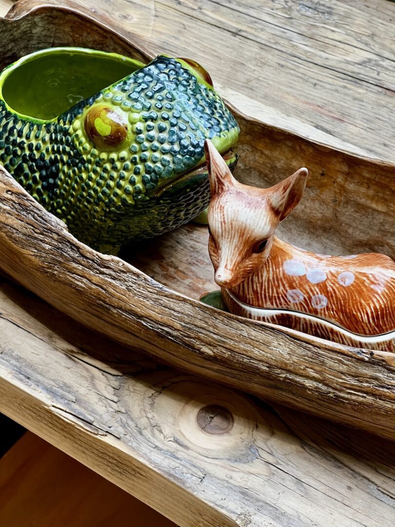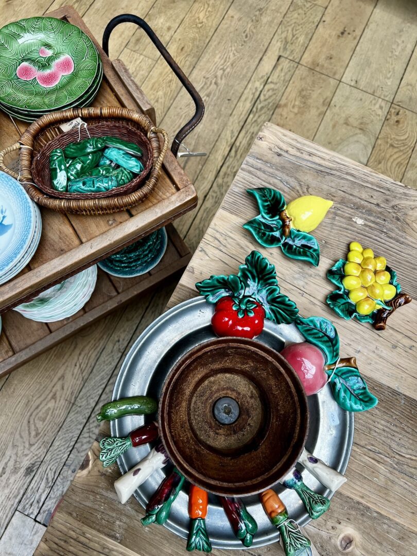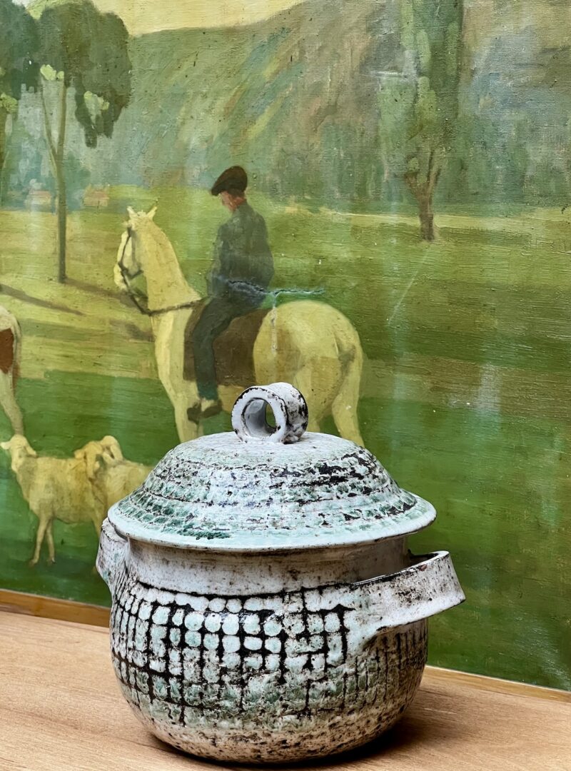 Le bois est à l’honneur : pin massif de la Sécession Viennoise, tabourets de Marcel Gascoin ou banquettes en châtaignier signées Lou Fagotin. Les lignes oscillent entre le mobilier “né de la nécessité” et le design pointu des années 50 à 70. On y croise aussi un bestiaire poétique en céramique, des pichets zoomorphes aux célèbres tables de Roger Capron, et les miroirs solaires de Mithé Espelt.