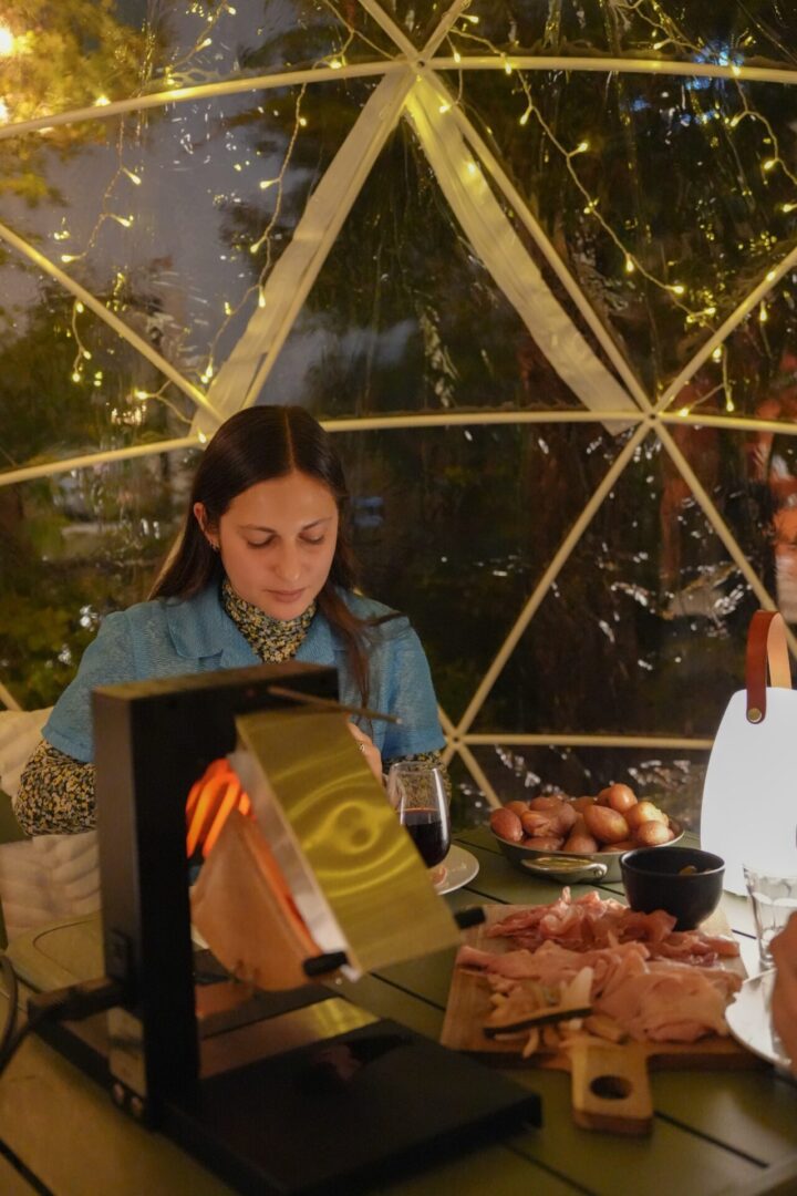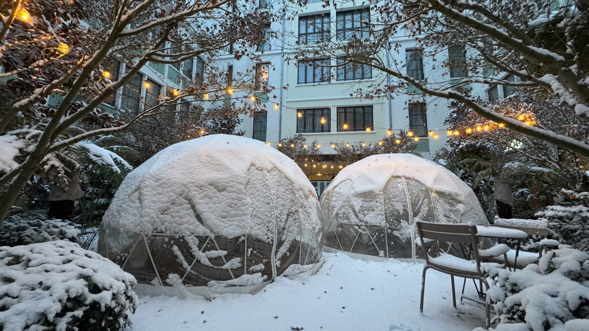 Dans le jardin caché de l’hôtel Le Grand Quartier, quatre bulles transparentes, accueillant chacune jusqu’à 8 personnes, s’illuminent à la nuit tombée. On y entre comme dans un refuge chic. À l’intérieur, chaleur douce, guirlandes lumineuses, playlist en fond, plaids sur les épaules. On enlève son manteau, on soupire, on est ailleurs. Paris continue de grelotter dehors, mais ici, l’hiver devient cosy, chouchoutés par la sympathique équipe dirigée par Amin.