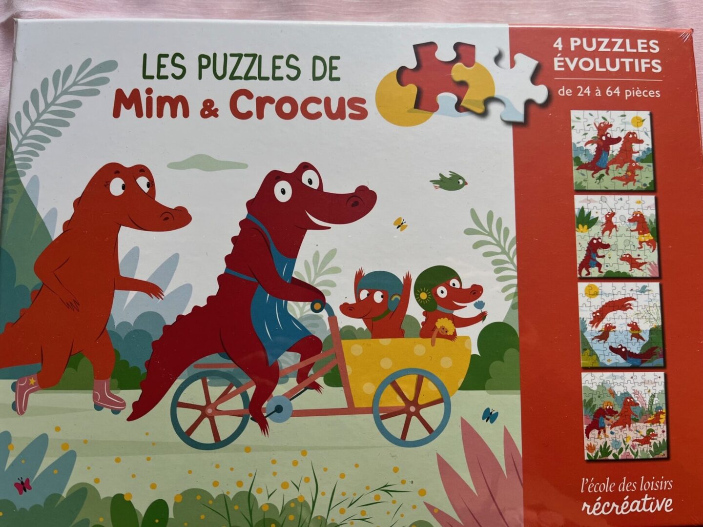 Pour prolonger l’aventure hors des pages, la série de Jean Leroy et Ella Charbon se décline en puzzles évolutifs, de 24 à 64 pièces, ces coffrets permettent de retrouver Mim et Crocus dans des scènes de baignades ou de balades champêtres. Une activité calme, idéale pour travailler l’observation tout en s’amusant avec des personnages déjà familiers des bibliothèques. Dès 3 ans, l’école des loisirs récréative, 18,90 €.
